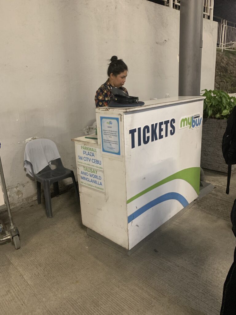バスチケット購入カンターでバス券を購入します。