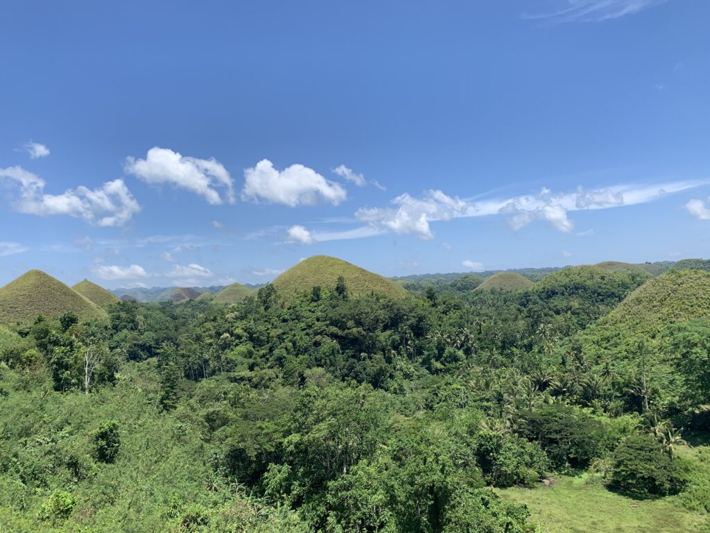 私が訪れたのは雨季の時期だったので、丘は一面の緑。まるで巨大な抹茶ボールが並んでいるような感じで、名前の“チョコレート”とは少し違う姿。でも、その鮮やかさが逆に美しく、写真では伝えきれない迫力がありました。