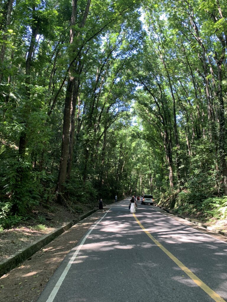 かつての伐採跡にマホガニーを植林して作られ、木々がトンネル状に道を覆っています。