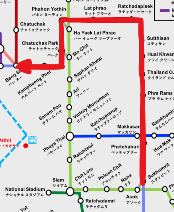 アソークに宿泊していましたので、スクンビット駅からバンスー駅に向かいました!