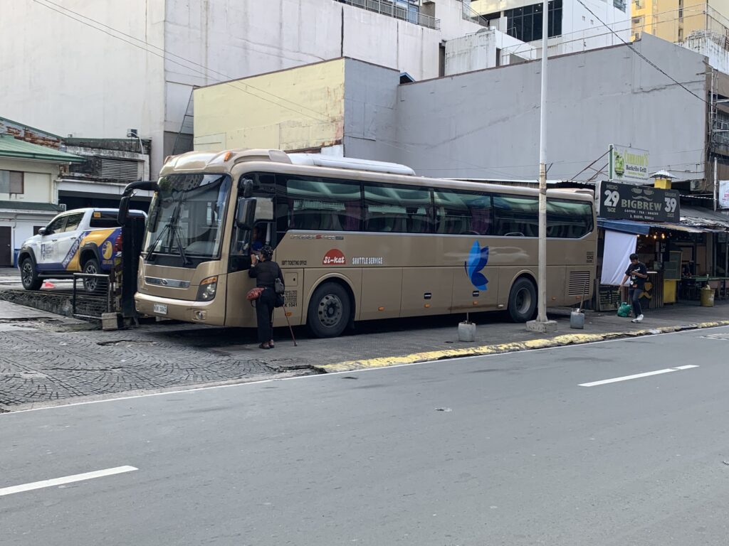 マニラ空港のターミナル3に到着しターミナルを抜け右側に向かうとP2Pバスが止まっています。